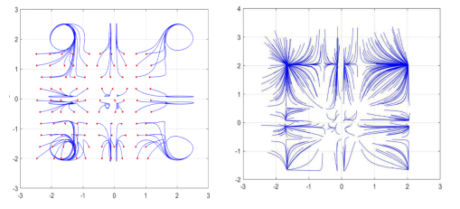 貴大新聞網(wǎng)訊(數(shù)學(xué)與統(tǒng)計(jì)學(xué)院)近日,國(guó)家天元數(shù)學(xué)西南中心貴州基地/貴州省數(shù)據(jù)驅(qū)動(dòng)建模學(xué)習(xí)與優(yōu)化創(chuàng)新人才團(tuán)隊(duì)、貴州大學(xué)數(shù)學(xué)與統(tǒng)計(jì)學(xué)院王錦榮教授團(tuán)隊(duì)教師歐世勤以第一作者在計(jì)算機(jī)領(lǐng)域頂級(jí)期刊 IEEE Transactions on Fuzzy Systems 等期刊發(fā)表神經(jīng)網(wǎng)絡(luò)系列學(xué)術(shù)論文,為相關(guān)領(lǐng)域的研究提供了新的理論和方法。針對(duì)模糊神經(jīng)網(wǎng)絡(luò),給出了狀態(tài)依賴切換機(jī)制構(gòu)建了狀態(tài)依賴切換模糊神經(jīng)網(wǎng)絡(luò)模型,探討了系統(tǒng)參數(shù)在狀態(tài)依賴切換下多穩(wěn)定性和固定時(shí)間多穩(wěn)定性問(wèn)題,旨在為神經(jīng)網(wǎng)絡(luò)在聯(lián)想記憶中的應(yīng)用提供理論依據(jù)。研究結(jié)果表明狀態(tài)依賴切換機(jī)制會(huì)導(dǎo)致系統(tǒng)的平衡態(tài)增加,使之在聯(lián)想記憶應(yīng)用中比傳統(tǒng)未切換的神經(jīng)網(wǎng)絡(luò)模型有更大的儲(chǔ)存容量。進(jìn)一步考慮系統(tǒng)參數(shù)具有概周期性,得到了具有高斯激活函數(shù)的元切換模糊神經(jīng)網(wǎng)絡(luò)具有個(gè)穩(wěn)定的概周期解,下圖分別給出了具有高斯激活函數(shù)的2元切換神經(jīng)網(wǎng)絡(luò)在時(shí)變概周期參數(shù)與非時(shí)變參數(shù)下的相圖。此外,在系統(tǒng)實(shí)現(xiàn)多穩(wěn)態(tài)的基礎(chǔ)上,提出了多控制器組合控制策略以實(shí)現(xiàn)多個(gè)平衡態(tài)的固定時(shí)間收斂,建立了固定時(shí)間多概周期性、多周期性和多穩(wěn)定性的判定準(zhǔn)則,相關(guān)結(jié)果已投稿且被(IEEE Transact
